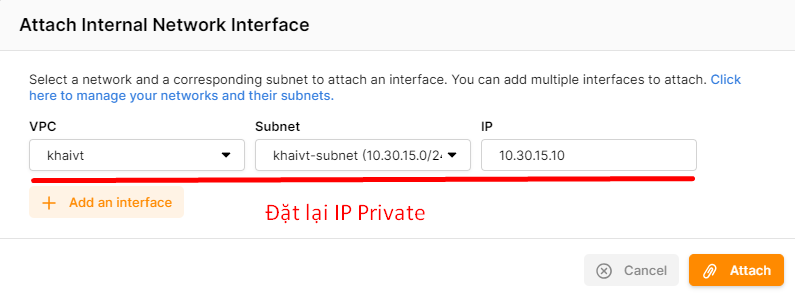 Tùy thuộc vào yêu cầu và mục đích sử dụng, ta có thể thay đổi private IP đối với vServer theo hướng dẫn bên dưới